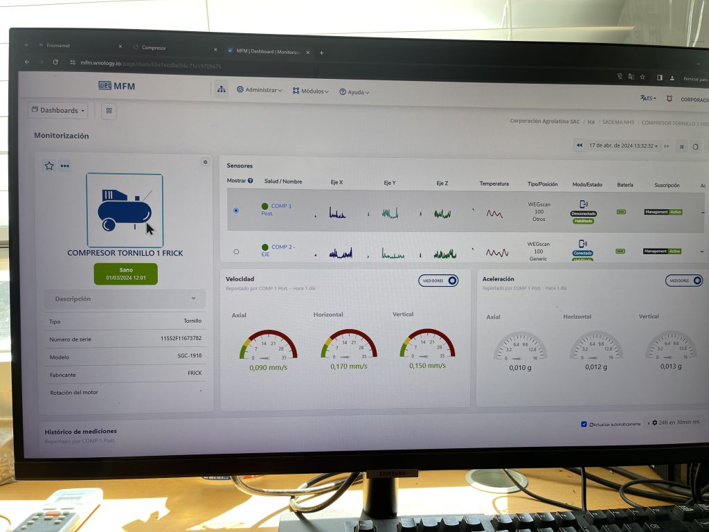 Por meio do parceiro e integrador WEG no Peru, Inova Chilltec, a solução da WEG foi escolhida pela Agrolatina devido à sua capacidade de fornecer uma análise precisa e confiável, análise avançada de dados e, ainda, com um investimento inicial 70% menor do que outras soluções disponíveis no mercado.
