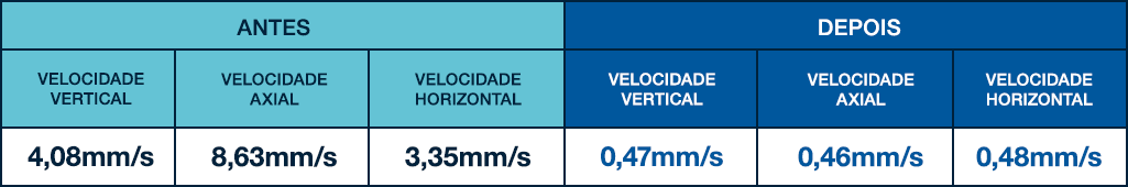O histórico das medições no MFM mostrou uma retomada do comportamento vibracional esperado para o equipamento, comprovando que a intervenção foi bem-sucedida e que o desgaste prematuro foi evitado: