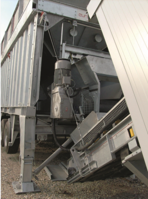 The drive technology from Watt Drive used in the EUROMIX mixing plants includes various types of gear units from the K Series with torque ratings from 2,700 to 20,000 Nm. The EUROMIX 400C has a pair of helical bevel geared motors (type KUA 85A 70 134M4) rated at 7.5 kW for the two dispensing belts and an angle parallel shaft geared motor (type CSA 80A 70 161M4) rated at 11 kW for the steep-angle conveyor belt.