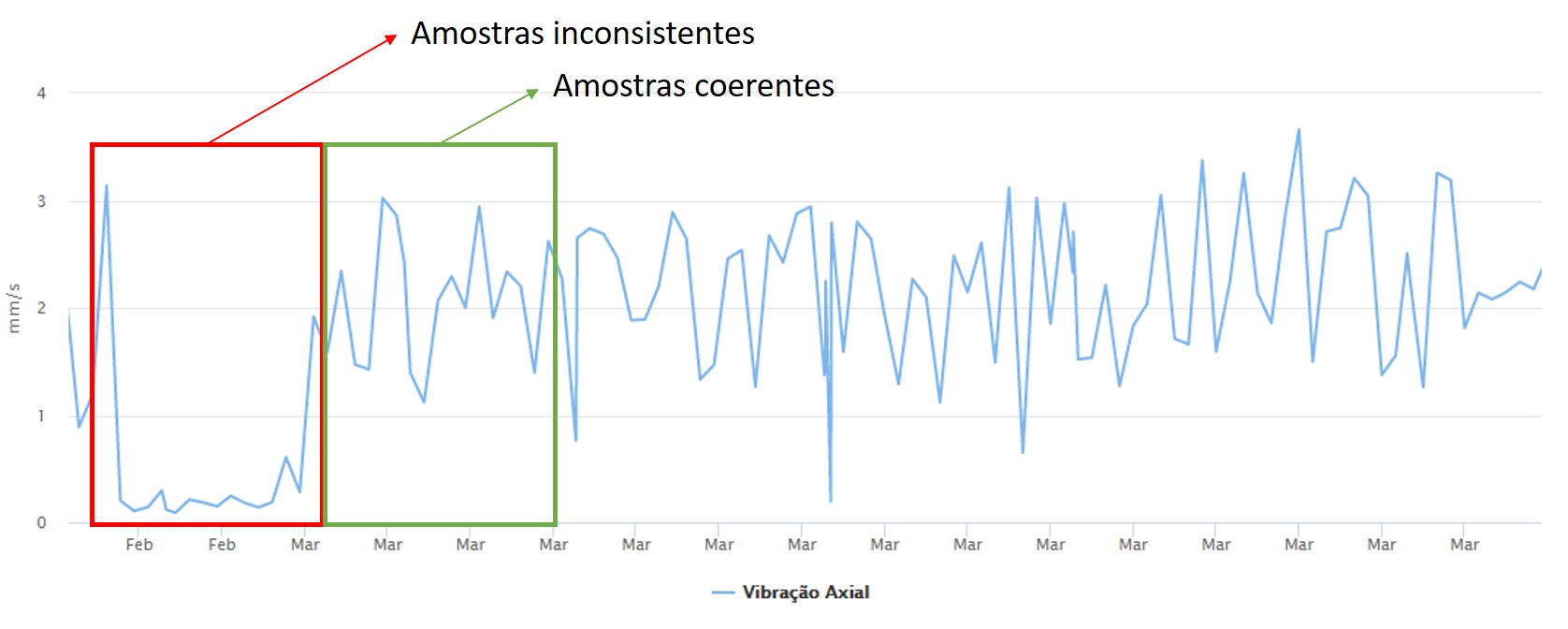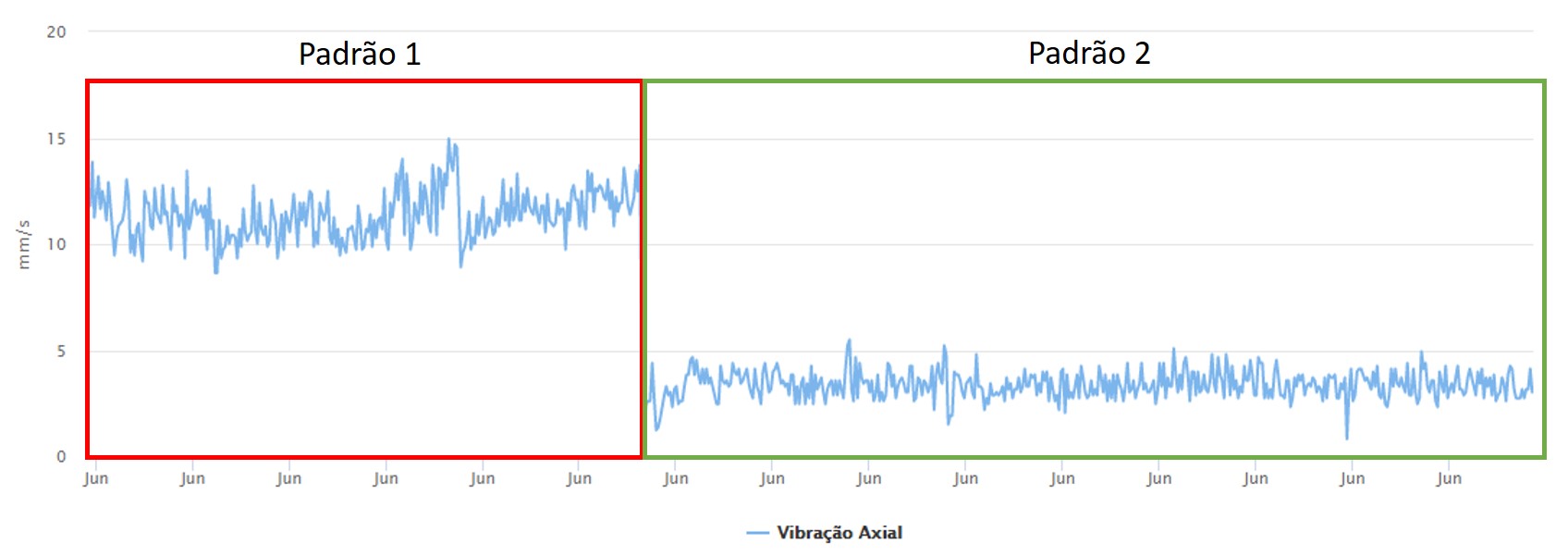 Neste período, o usuário será informado dos padrões de funcionamento encontrados e, caso seja encontrado algum padrão com níveis de vibração acima dos valores estabelecidos pela norma ISO10816-3, o usuário também será notificado.