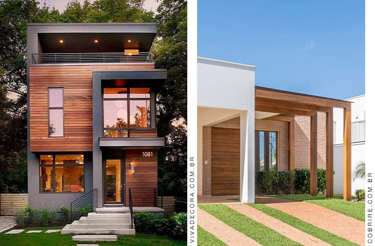 A madeira, além de ser um revestimento duradouro, também consegue transitar entre diferentes estilos de arquitetura. Combina com praticamente todos os materiais de fachadas, podendo ser um complemento de detalhe ou na fachada inteira.