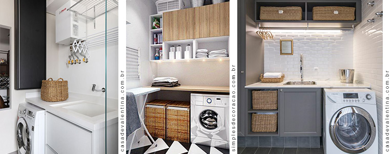 Para manter a ordem de uma área de serviço, pequenas caixas e cestos organizadores são excelentes.