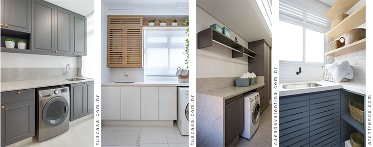 As lavanderias menores são uma tendência que está se tornando comum nos apartamentos pequenos. Isso acontece para liberar mais espaço para os outros cômodos onde a família passa mais tempo.