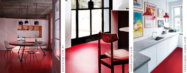Já que se trata de uma cor ousada, por que não ousar na decoração? A Viva Magenta também pode ser utilizada no piso. Essa escolha inspira um ar de criatividade e exuberância, tornando o ambiente marcante.