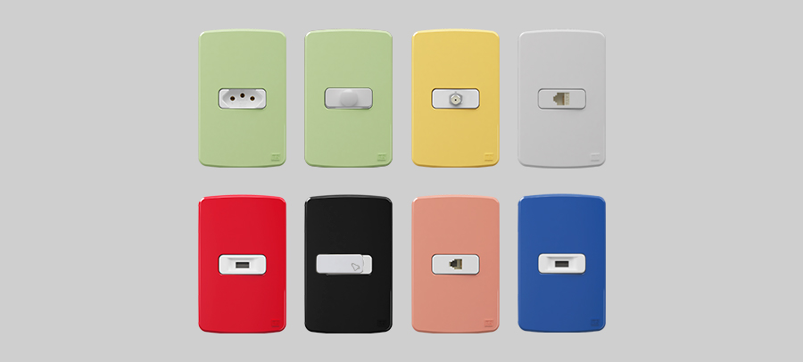 Os módulos estão disponíveis nas cores branco e preto e em diversas opções, como tomada, carregador USB, interruptor, rede de dados, telefonia, TV, pulsador para campainha e muito mais, levando funcionalidade e praticidade para o seu dia a dia.