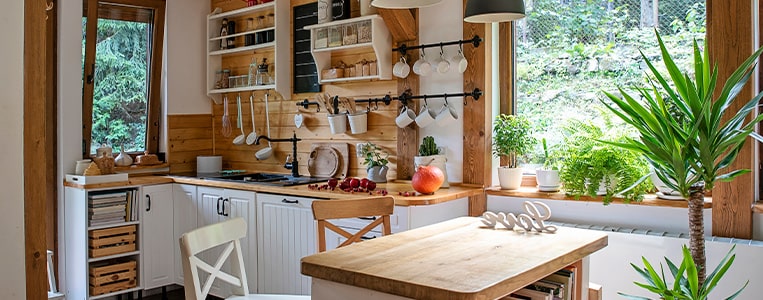 A bancada pode ser em formato de península e utilizar granito, o que confere charme e funcionalidade ao mesmo tempo. Para decorar, é possível utilizar plantas e caprichar na iluminação (para ambientes internos, veja também como fazer um jardim de inverno).