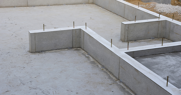 Para dar o acabamento final na fundação, é preciso preencher os blocos de concreto. Em seguida, pensando em evitar problemas com infiltração no futuro, deve-se aplicar uma impermeabilização na base.