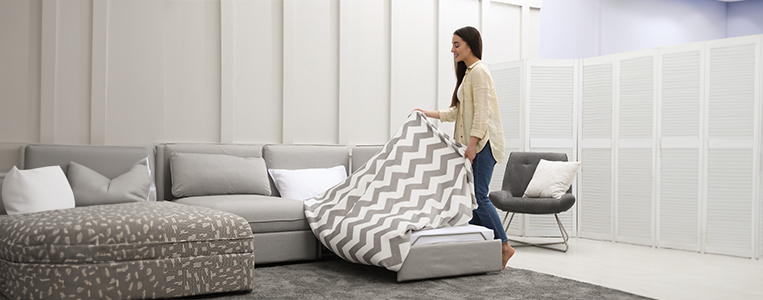 Sofás-camas, mesas extensíveis e unidades de armazenamento versáteis são exemplos de como a funcionalidade casa com o design.