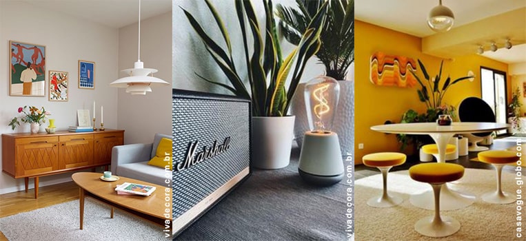 É possível restaurar móveis antigos que são herança de família e trazer para a decoração da sua casa. Além disso, também é uma ótima ideia apostar em outros elementos e objetos retrôs.