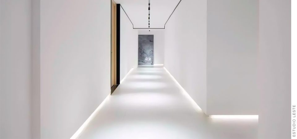 Utilizar a iluminação como aliada também é uma ótima alternativa. Com luzes de LED ou combinação de lâmpadas, é possível deixar o lugar com maior amplitude. Assim, seu olho é guiado ao longo do espaço criando uma atmosfera mais inovadora.