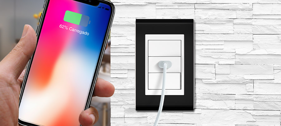 Os módulos USB da Refinatto são bivolt e garantem o carregamento de bateria para equipamentos eletrônicos diretamente no módulo. É possível carregar qualquer tipo de dispositivo móvel, como tablets e smartphones, sem se preocupar com a marca. O tempo de carga é reduzido em função da corrente de saída de 1,5 A, que garante segurança e rapidez de forma simultânea. O módulo USB interrompe a alimentação após o carregamento completo, evitando que a bateria seja forçada sem necessidade, prejudicando sua vida útil.