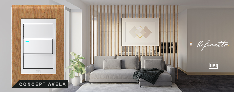 Para complementar a sofisticação das divisórias de madeira, nada melhor do que utilizar tomadas que elevem a estética do ambiente. A linha Refinatto Concept Avelã da WEG é uma escolha perfeita.