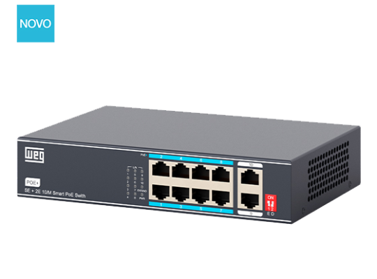 O SWITCH WEG M08-P31 conta com 8 portas PoE+ e 2 portas Uplink, garantindo uma conexão estável para atender o seu projeto de segurança eletrônica.